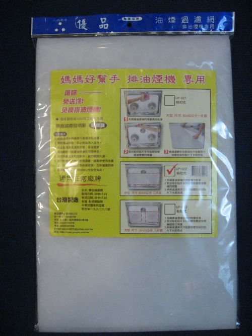 將過濾網左右前後拉平貼緊用力按壓在黏扣貼片上方即完成。