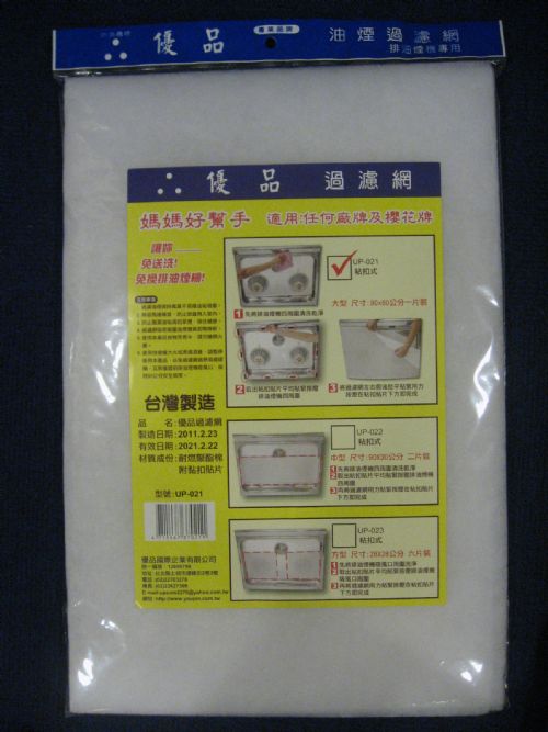 將過濾網左右前後拉平貼緊用力按壓在黏扣貼片上方即完成。